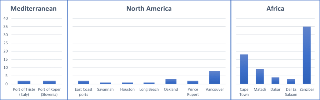 - On the other hand, the ports listed below are experiencing longer waiting times ranging from 1 to 10 days delays in the major ports in the Mediterranean and North America and 5-35 days in major ports of Africa.