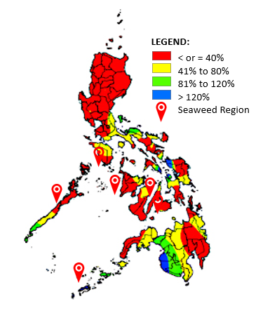 - Generally warm and fair weather conditions will be experienced over the entire archipelago. Slight to moderate seas are experienced almost over the entire Philippines. Rough seas, above-normal rainfall, and other extreme weather conditions might result in stressful abiotic conditions for seaweed farming which results in developing “ice-ice disease” in seaweed crops.