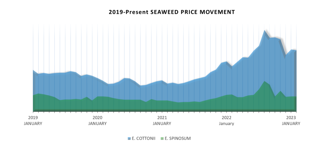 - There is no major movement in the current market of E. spinosum. The price, supply and demand, and quality/yield of E. spinosum are currently stable and are forecasted to be stable in the next few months.